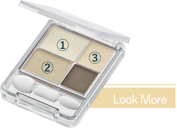 - 2「ツイン カラー アイシャドウ 84」④を上まぶたの目じり側1/3までぬります。