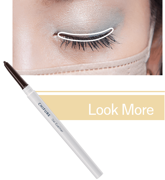 - 1「ジェル アイライナー BR30」で上まぶたのまつ毛の間を埋めるように描きます。