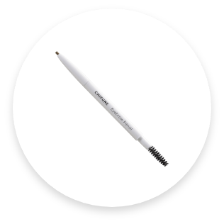 - 1「アイブロー ペンシル くり出し式 21」で、太めの眉を描きます。
