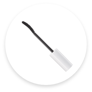 - 2「マスカラ ボリューム タイプBK30」を上まつ毛にぬり、黒目の上に重ね付けをします。
