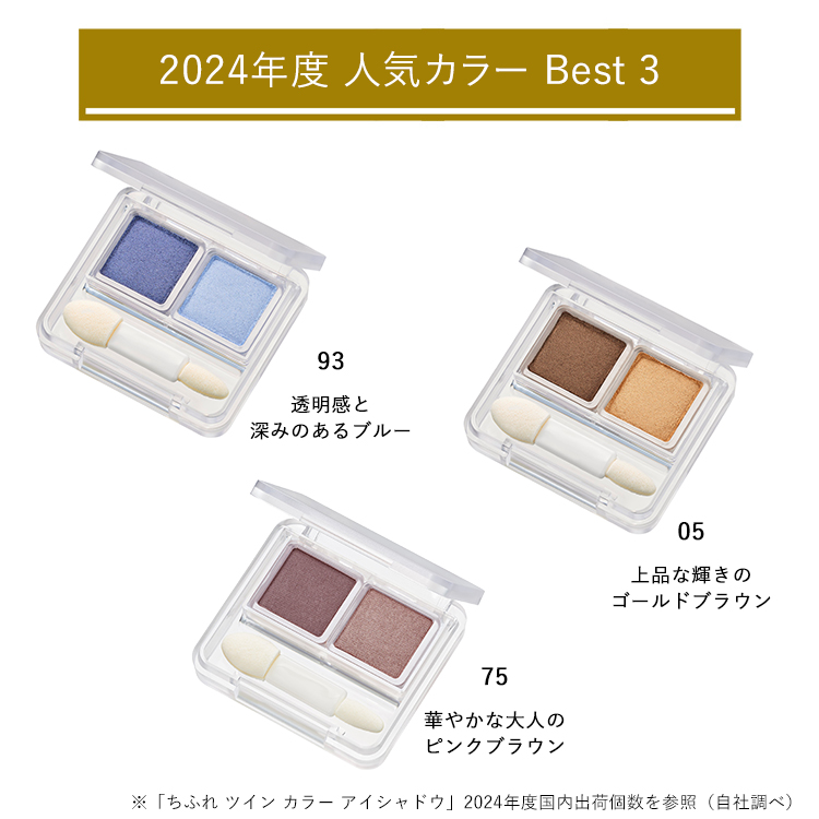 ちふれの独自処方でパウダーがやさしくほどけて密着し、見たままのあざやかな発色が長持ち。