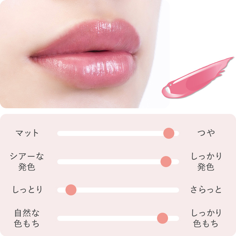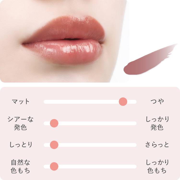 - 唇本来の自然な質感のまま、色味で存在感を際立たせる。